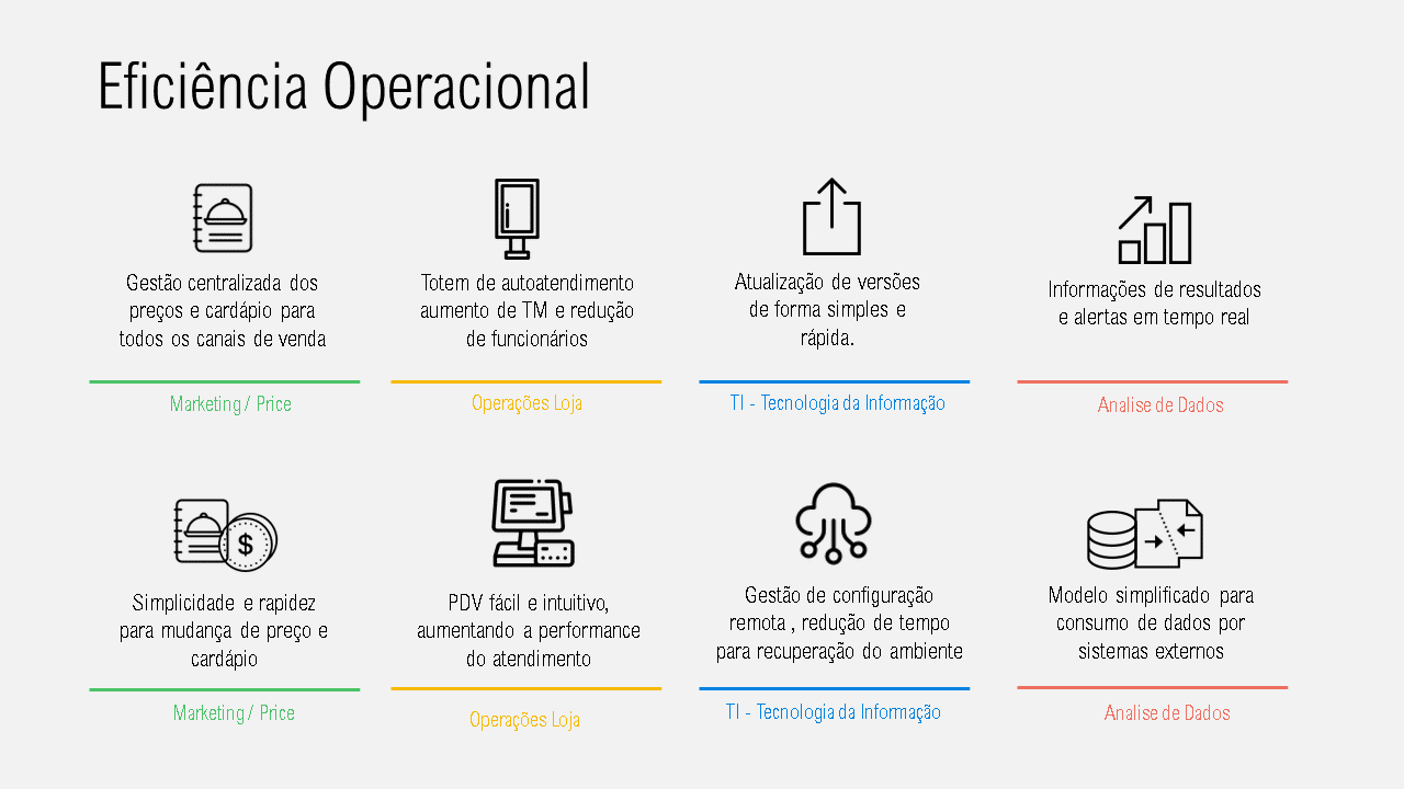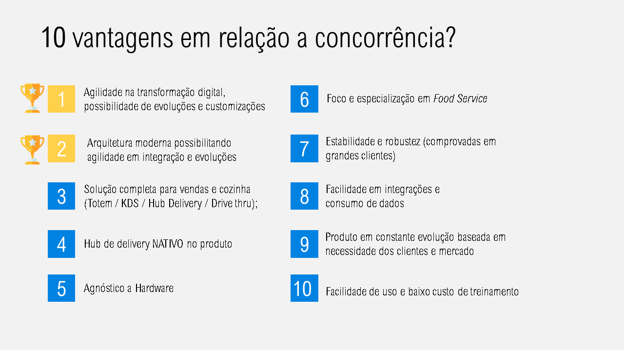 BackOffice, PDV&KDS, Totem, Delivery e mais.